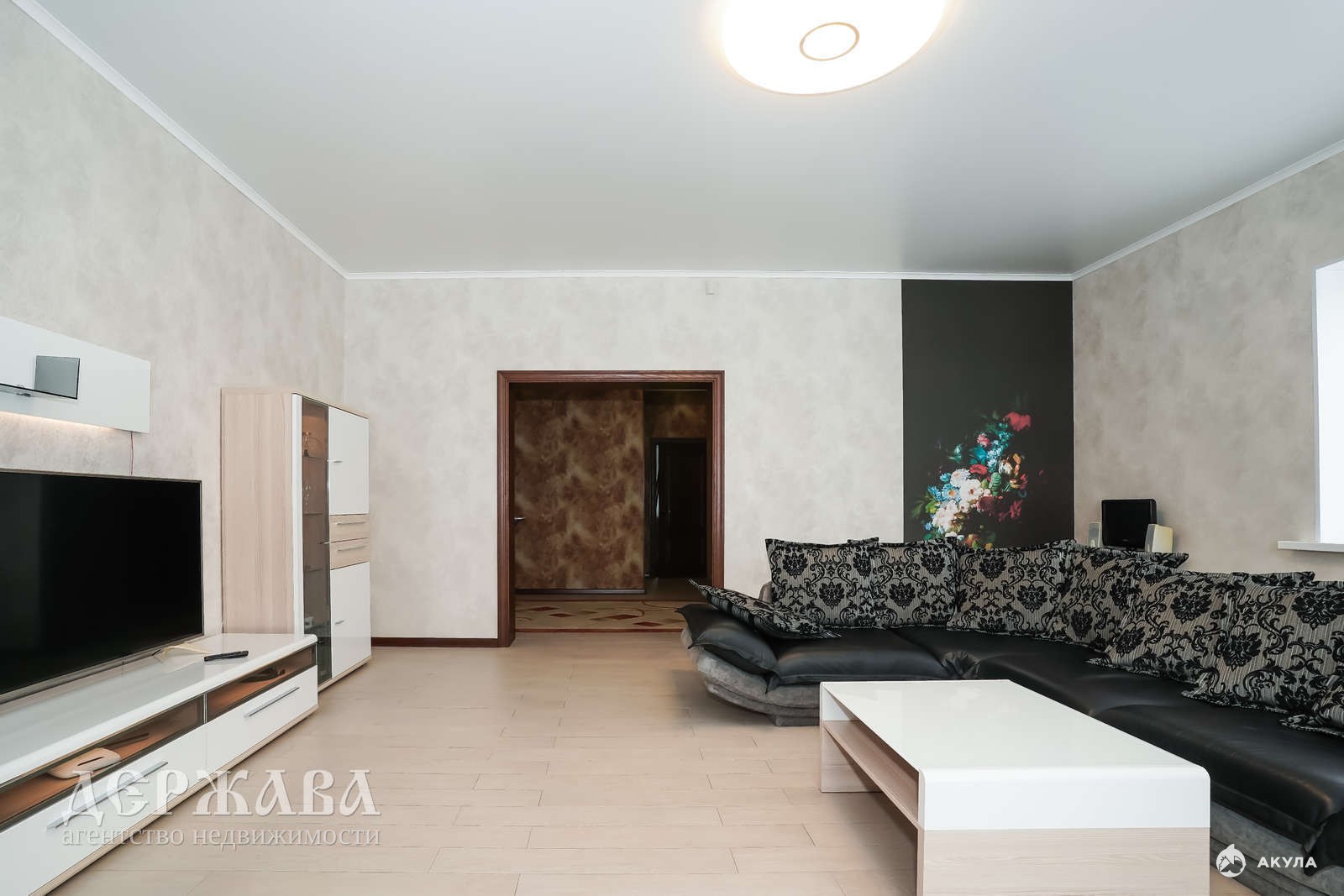 Планировка: просторный холл, большая гостиная, кухня, коридор, две спальных комнаты, отдельная гардеробная комната прилегающая к спальне, ванная комната с душевой и туалет отдельно, котельная.
