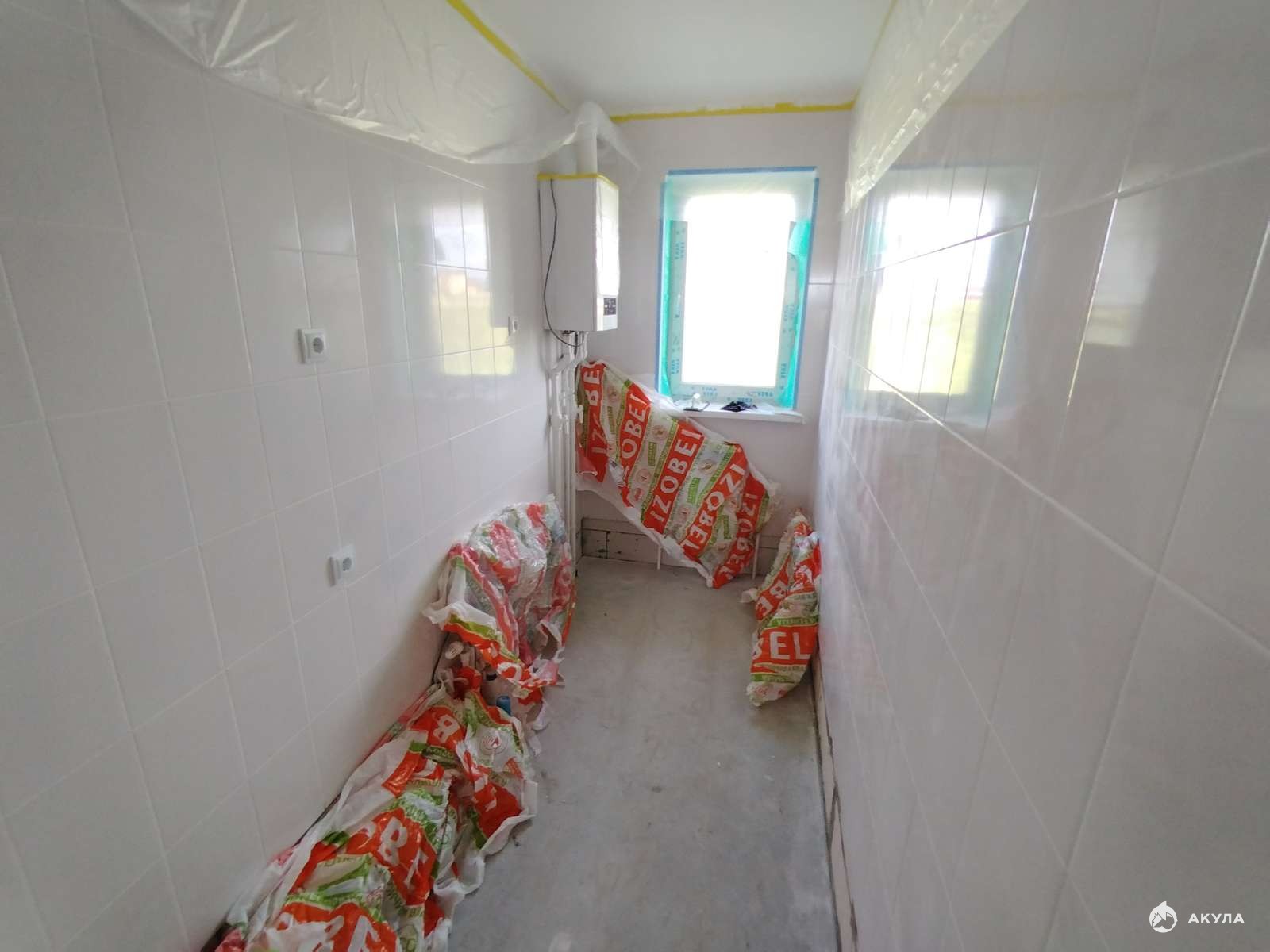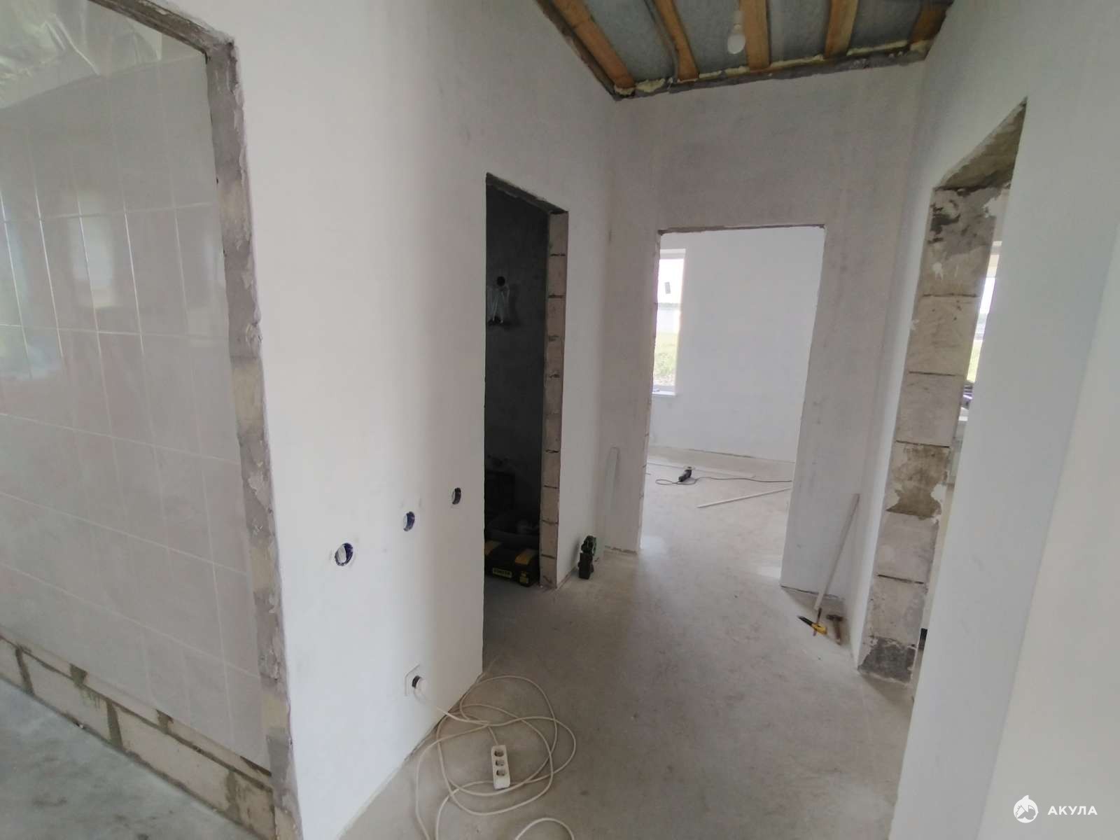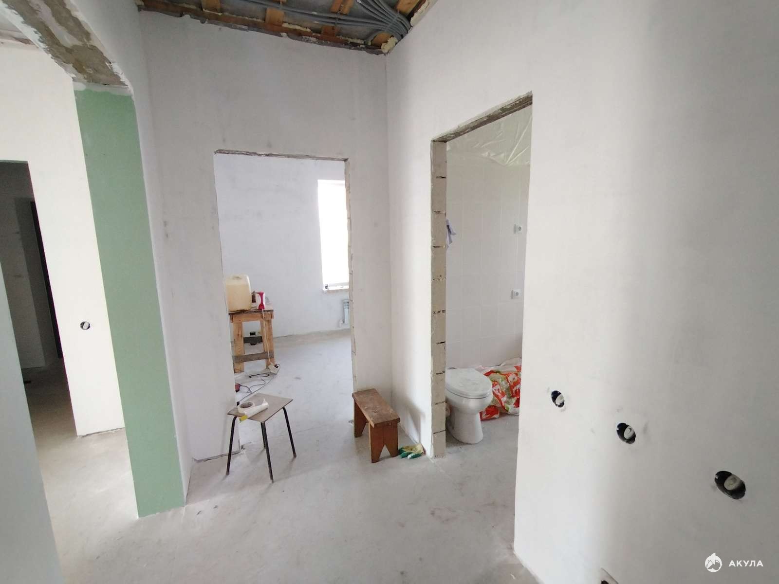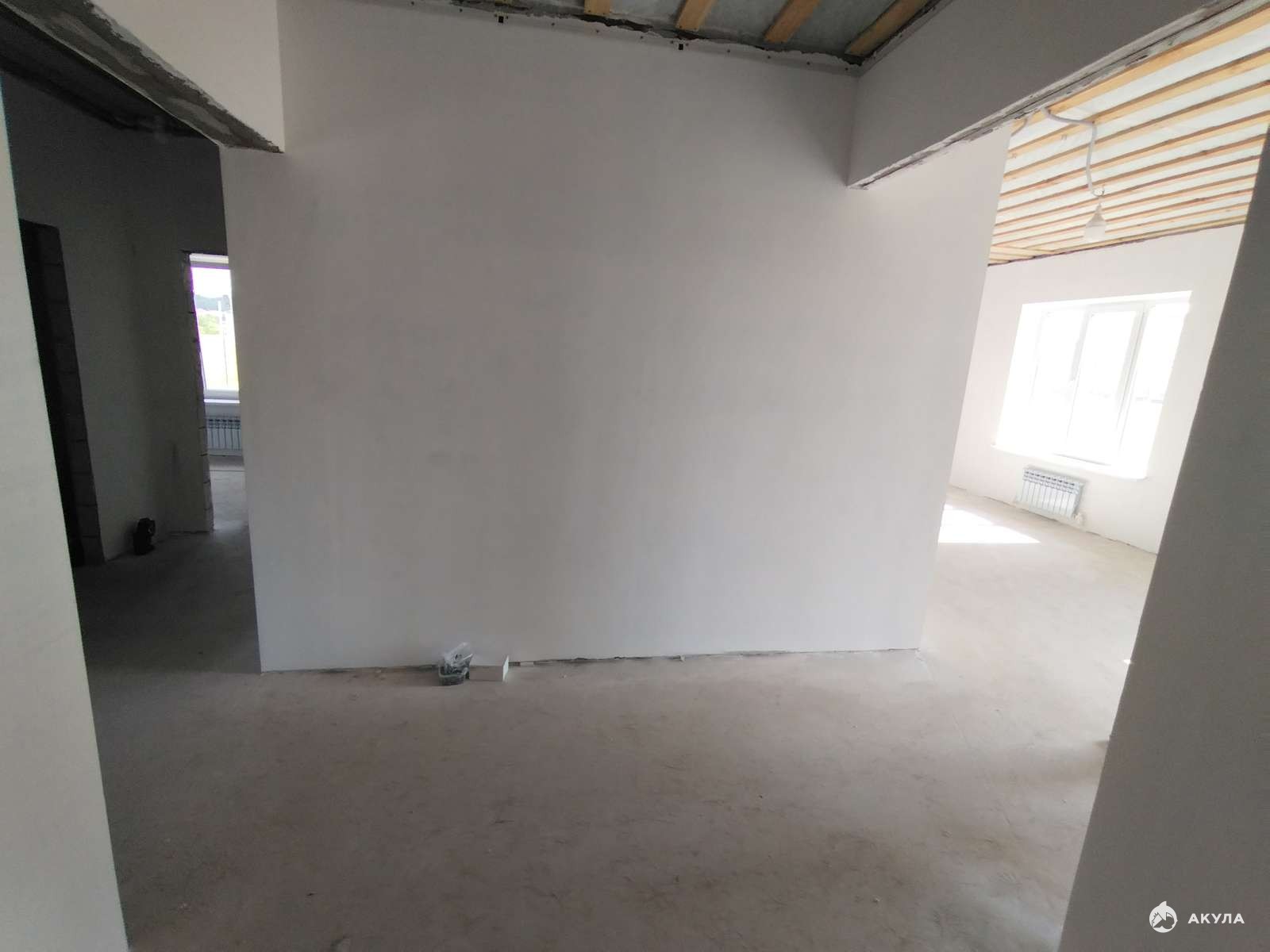 - стены оштукатурены, выполнена чистовая стяжка пола;