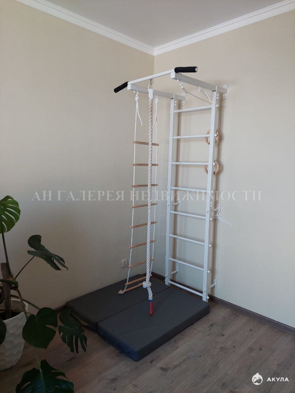 Во дворе установлена шведская стенка и есть детская площадка для активных игр.
