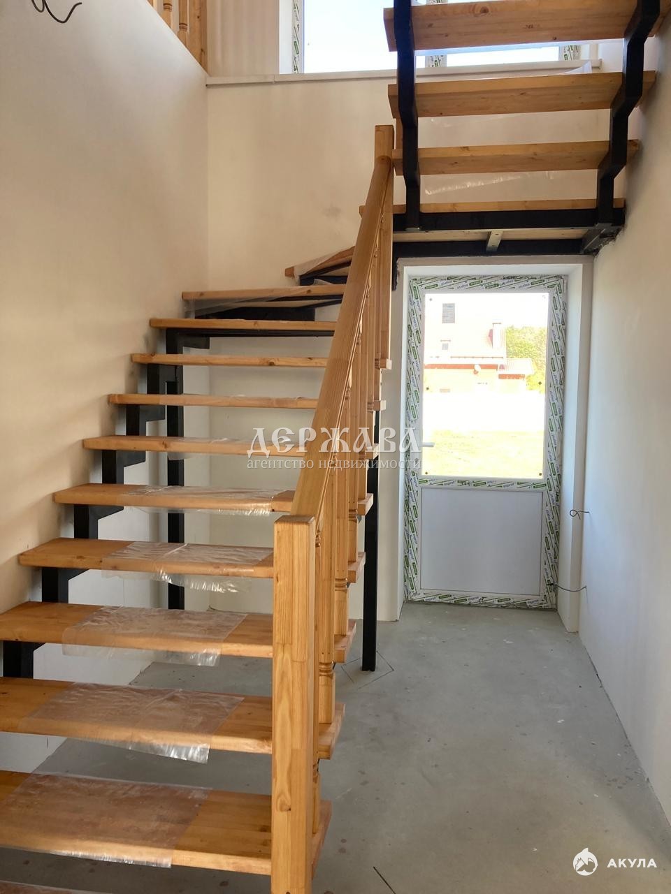В доме полностью выполнены черновые и чистовые работы, отделка White box, лестница на второй этаж полностью готова.