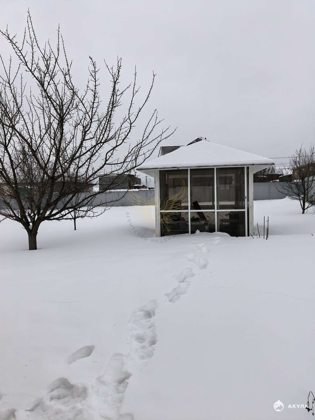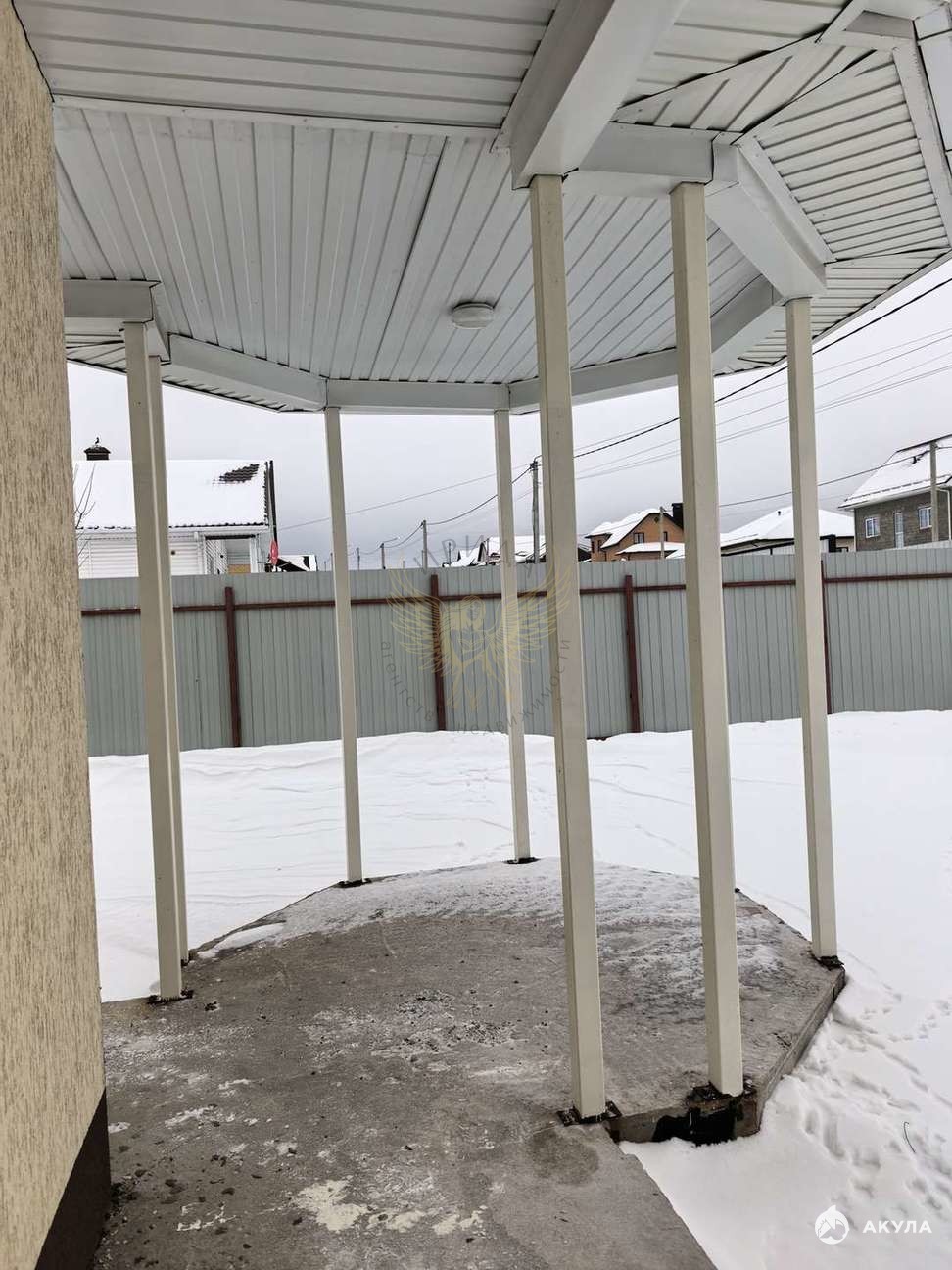 Участок полностью огорожен забором из профлиста. Залиты бетонные дорожки и подъезд к гаражу.