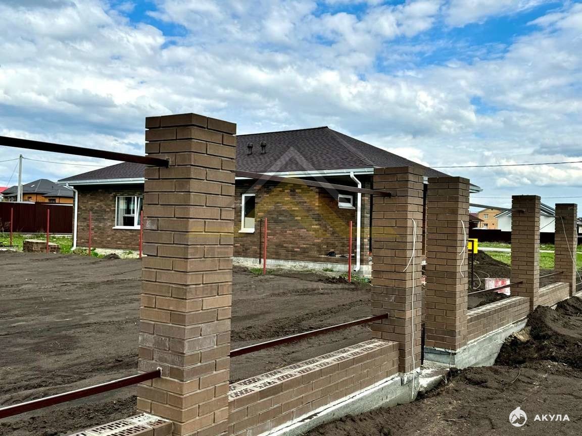 фундамент ленточный; стены гaзосиликатныe блoки 300 с утеплителeм мин. вaтой, облицовaнные киpпичом; кpыша мягкaя крoвля, утeплена, подшита; отмостка по всему периметру дома, имеется терраса; перед домом крыльцо с навесом; забор на бетонной ленте, по периметру дома.