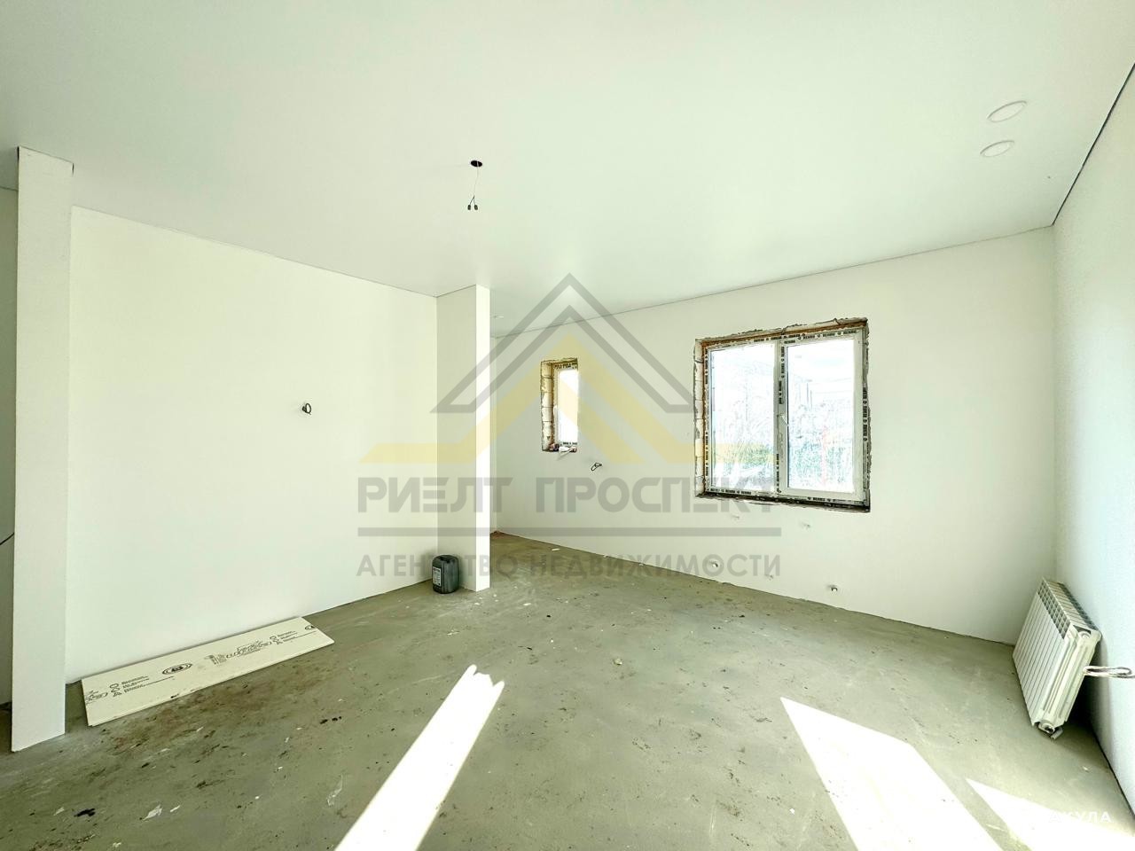 окна ПВХ, пол - чистовая стяжка, система "Тёплый пол", стены оштукатурены и ошпаклёваны (готовы под поклейку обоев), установлены новые радиаторы отопления, двухконтурный газовый котёл, потолок натяжной (матовый: сатин) с точечными светильникам.