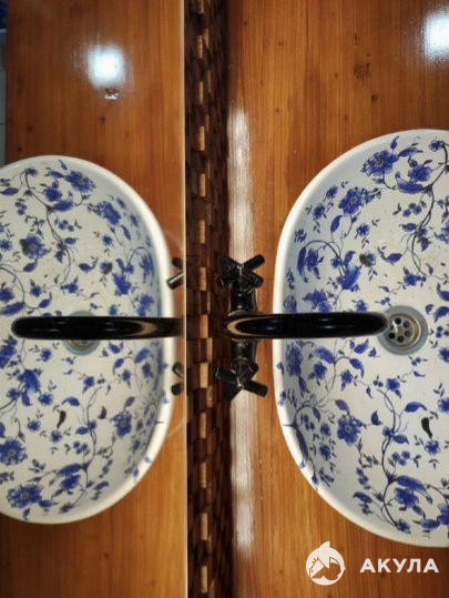 Стены — брашированное бревно, обработанное кедровой живицей.