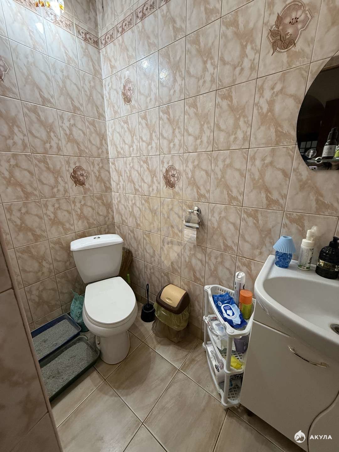 Санузел раздельный облицован кафелем до потолка,
