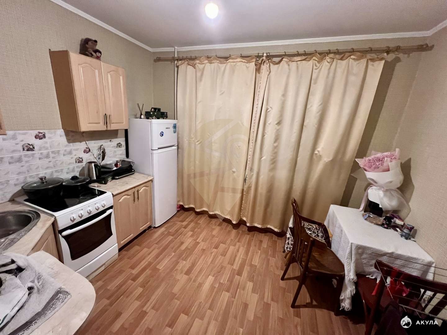 Кухонный гарнитур с плитой остаётся при продаже.