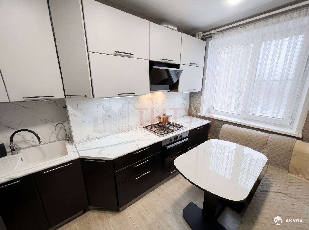 Оснащение кухни: Всё необходимое на месте: газовая плита и современная кухонная мебель.