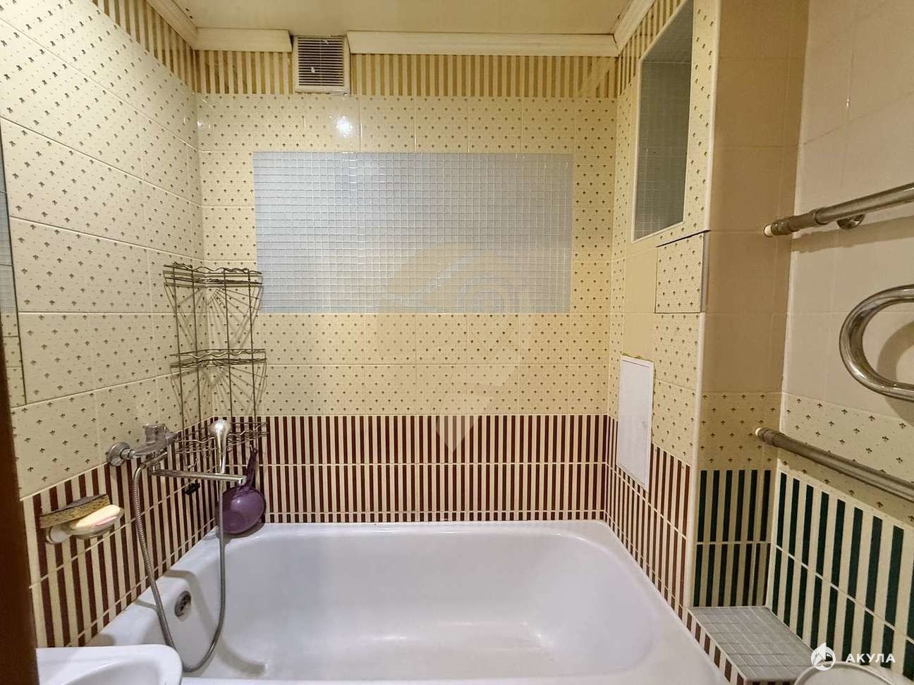 Санузел совмещенный в кафеле до потолка;