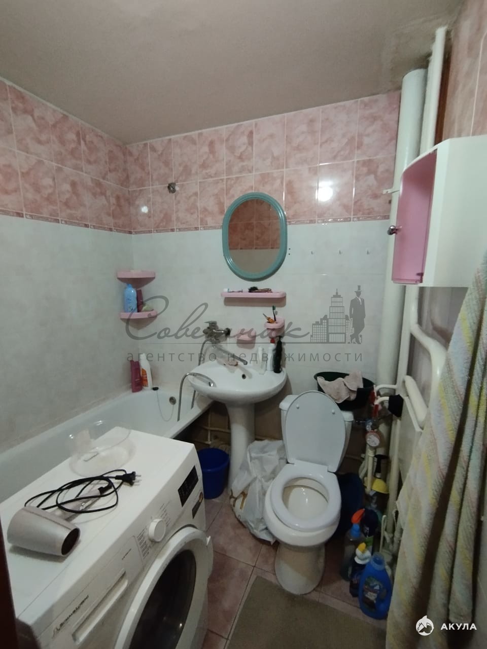 - санузел совмещённый, кафель до потолка .