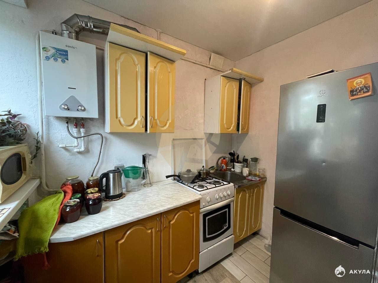 Кухонный гарнитур с плитой остаётся при продаже.