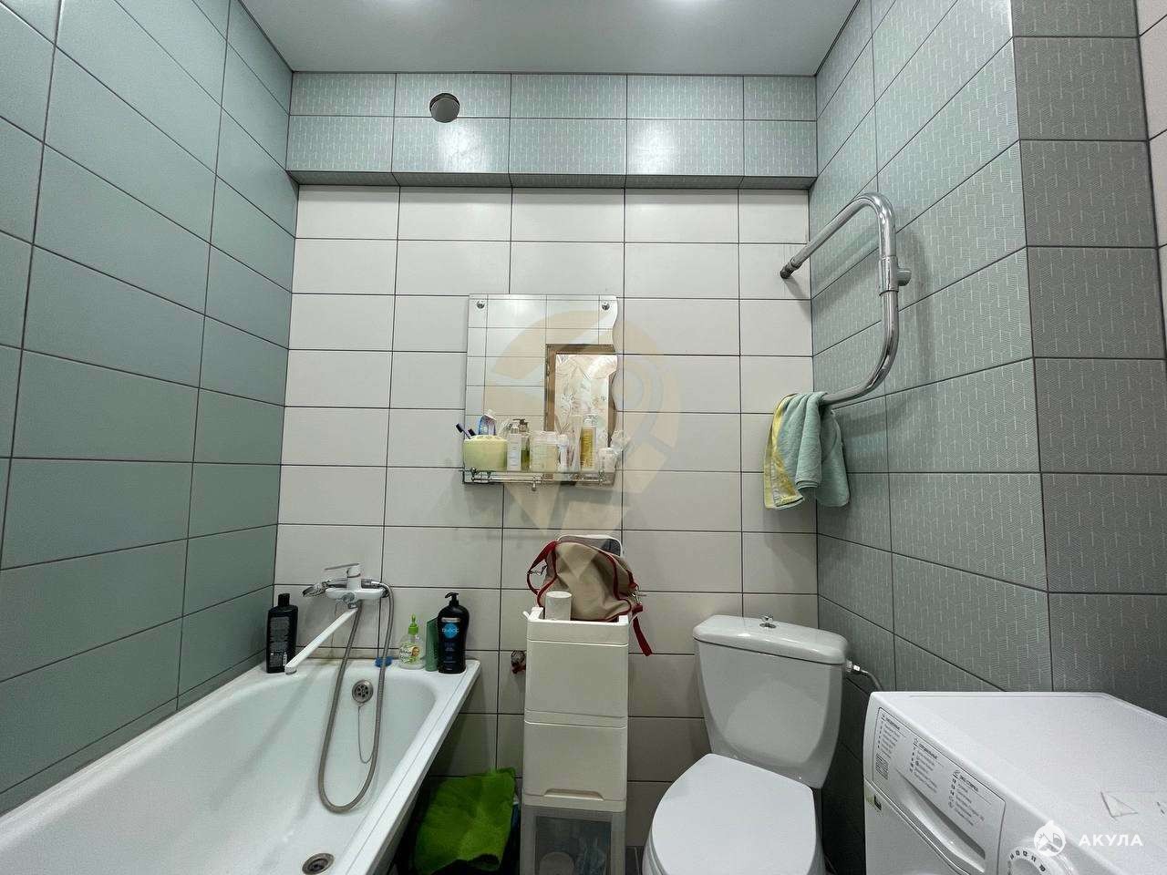 Санузел раздельный в кафеле до потолка;