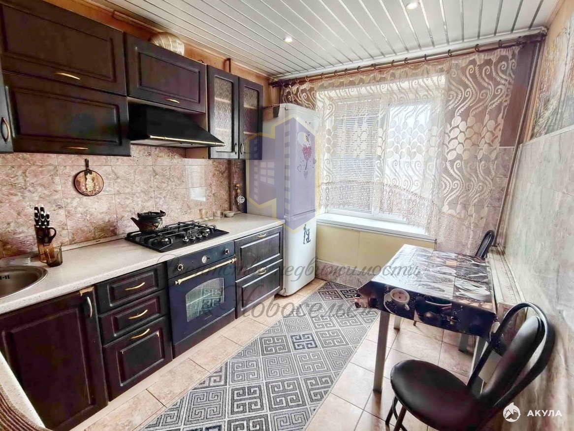 Квартира в хорошем, жилом состоянии, установлены окна ПВХ, межкомнатные двери в едином стиле. Санузел раздельный (стены облицованы плиткой до потолка), установлены счётчики на воду и электричество. Пол на кухне выложен практичной плиткой, в комнатах постелен ламинат. Входная дверь металлическая. Чистый подъезд.