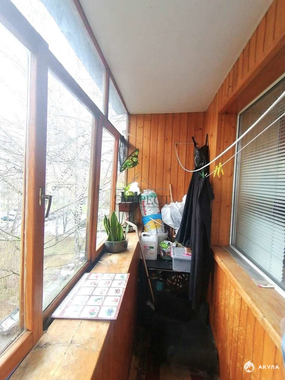 * Балкон застеклен, обшит вагонкой.