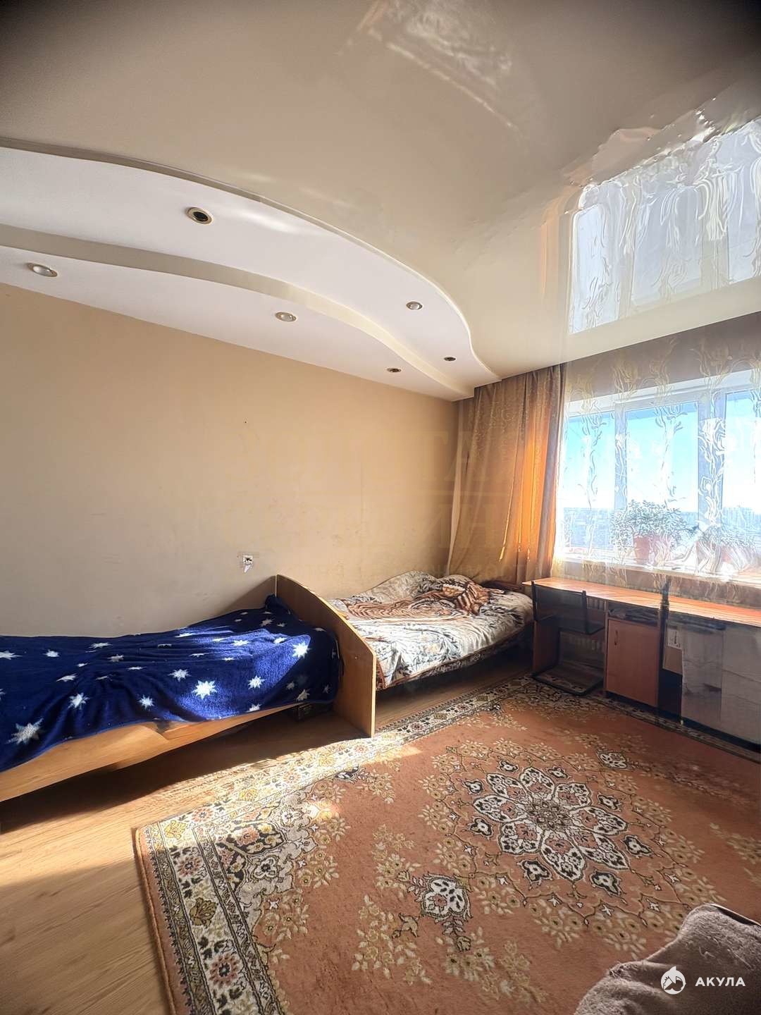 Квартира с косметическим ремонтом- выровнены стены, двухуровневые потолки из гипсокартона с точечным освещением, ламинат в едином стиле, балкон на 2 комнаты остеклен, утеплен и отделан вагонкой.