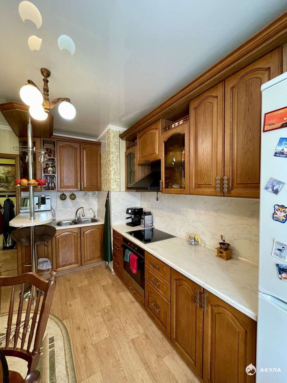 · Черновые работы не нужны: Натяжные потолки, межкомнатные двери из массива+шпона (орех), в санузле — кафель.