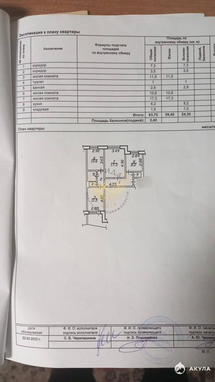 * Общая площадь квартиры — 63, 7 кв. м.