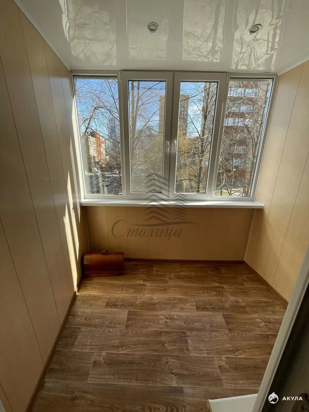 балкон застеклён, балкон отделан МДФ панелями;