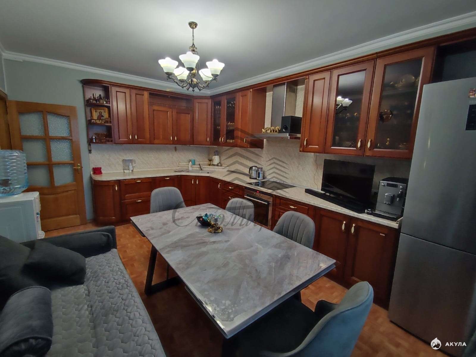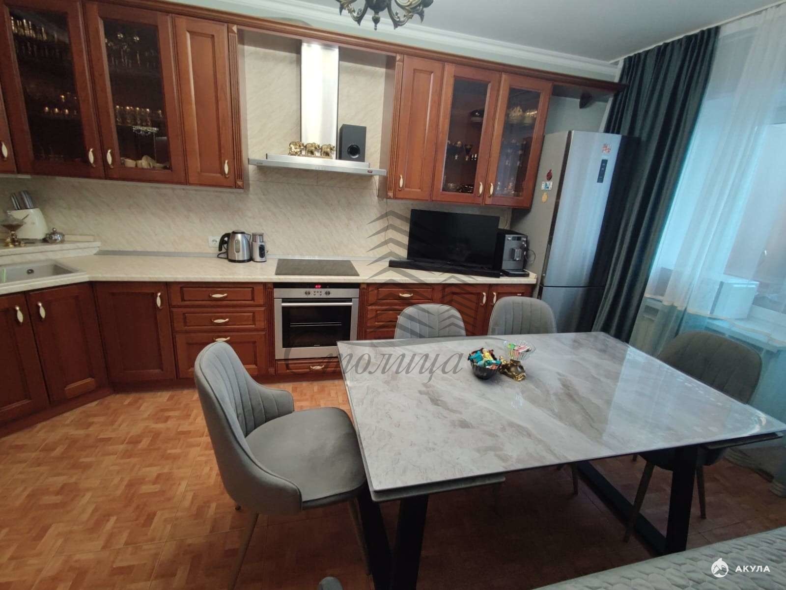 кухня: встроенная от фирмы «Bachio» из натурального дуба (выполнена по индивидуальному заказу), остаётся новым собственникам;