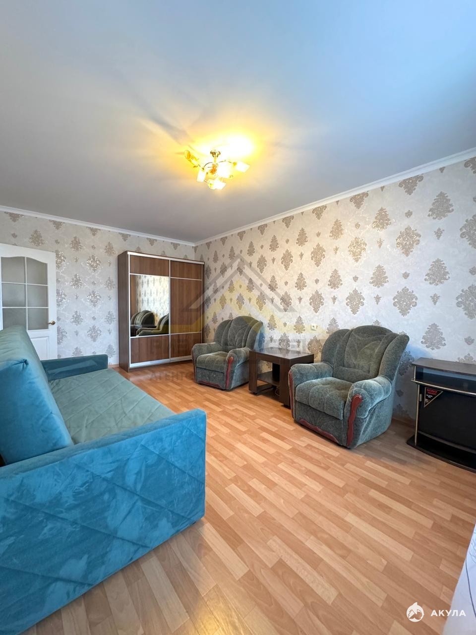 КОМНАТА: шкаф купе, диван двуспальный раскладной (новый), 2 кресла, тумба под телевизор, журнальный стол;